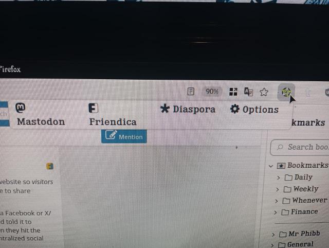 @Random Penguin Nods, "This sounds like what Fedishare (abandonware sadly) does, but they do it via extension rather than being on the web page to get around the instance issue. In the extension settings, you set what instance your on for whichever Fedi services you use, limited to one instance per service (programmer's choice?), and if you're on a web page you want to share, you simply click on the Fedishare button in your toolbar followed by clicking on the service, and you get a pre-filled new post ready for final touches and posting or scheduling.