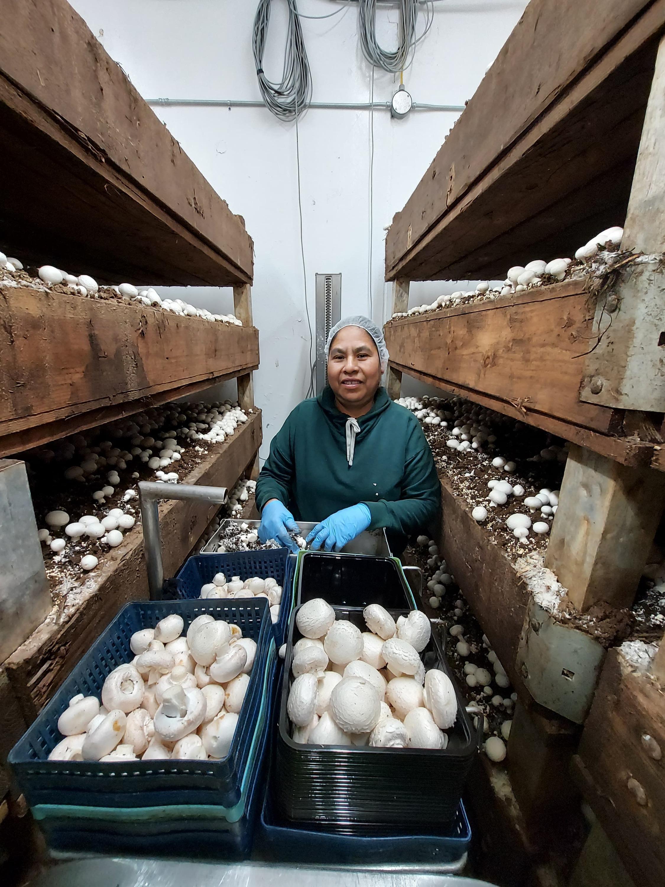 "María" has harvested mushrooms for 22 years under a UFW contract at Monterey Mushrooms. "I am happy because I have good benefits including a family medical plan and get vacation and holiday pay. Best of all, I get respect on the job and a good workplace environment." #WeFeedYou