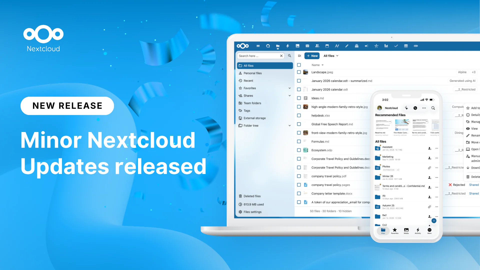 New maintenance updates are available for Nextcloud Hub 25 Autumn and Nextcloud Hub 26 Winter. Keep your server up-to-date!Mikhail Korotaev (Nextcloud)