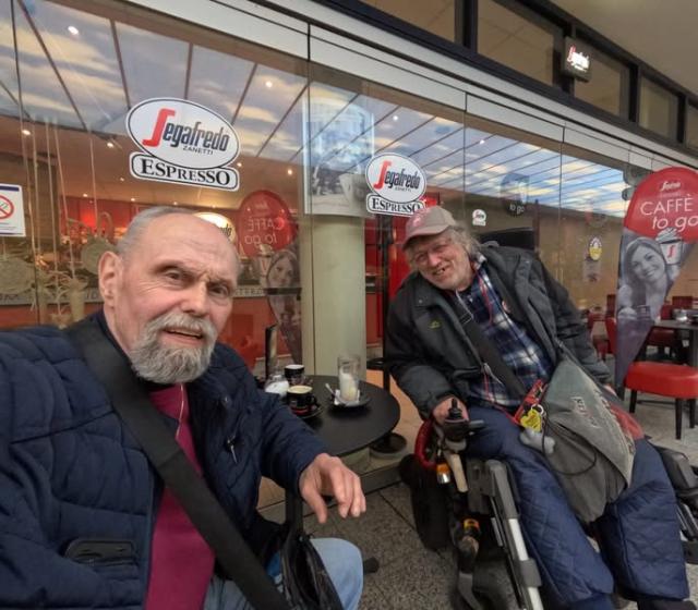 Winfried Hoffmann, Rollstuhlfahrer, Barriere-Scout, Wheelmapper und Inklusions-Coach mit Erich Chris...ericola (GETTR)