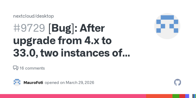 ⚠️ Before submitting, please verify the following: ⚠️ This is a bug, not a question or a configuration issue. This issue is not already reported on Github (I've searched it). Nextcloud Server and D...MauroFoti (GitHub)