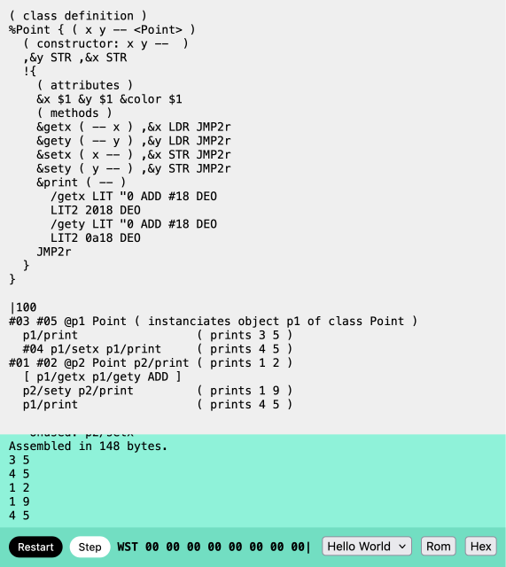 more cursed #uxn: class definitions, to instaciate multiple objects of a same class: