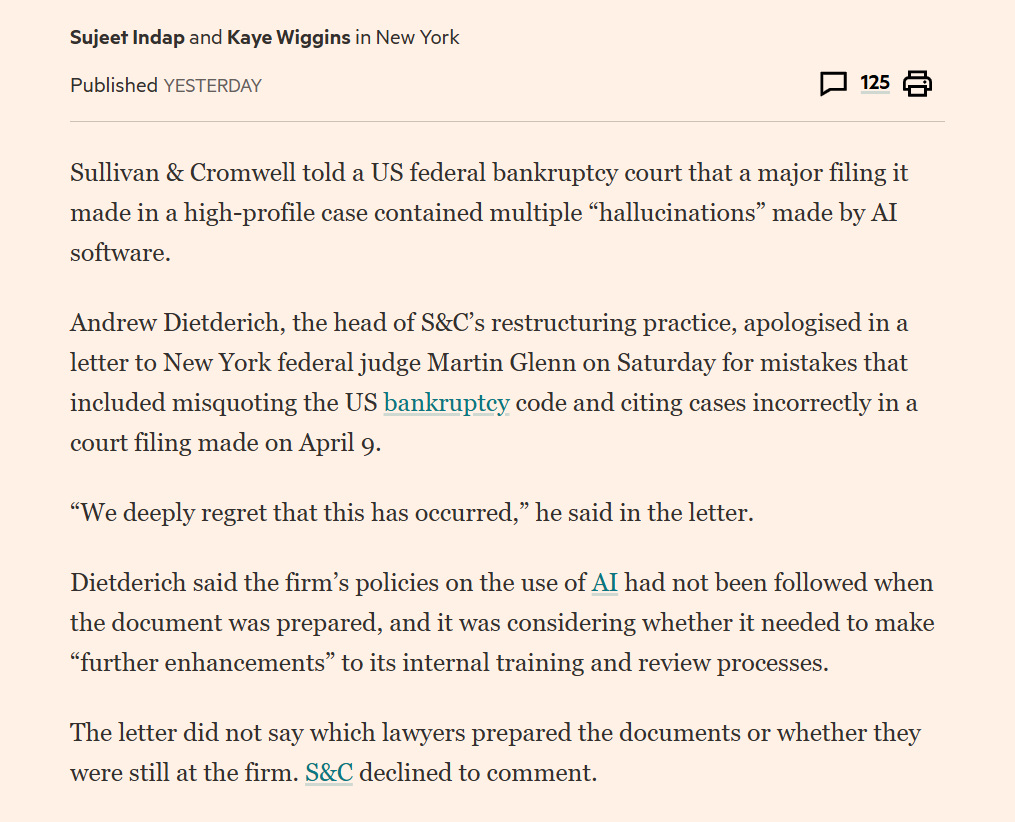 Knowingly using a piece of software that *BY DESIGN* fabricates text is not "hallucination" - it is fraud. I'd be prosecuted if I sat down and invented references for submissions in a court case. I'd lose my job as an academic if I did the same for a paper. Someone explain why automating fraud has somehow made it completely fine and consequence-free?