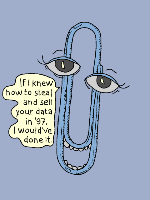 The funny thing is, they actually couldn't have gotten away with it in 1997. Oh don't get me wrong, people would tolerate a lot even then and let them get away with horrible stuff, but people absolutely wouldn't have allowed anything remotely like what goes on today. It has been one heck of a long process to get everyone to the point where Microsoft can do everything but install cameras in their house and people will just shrug and accept it.