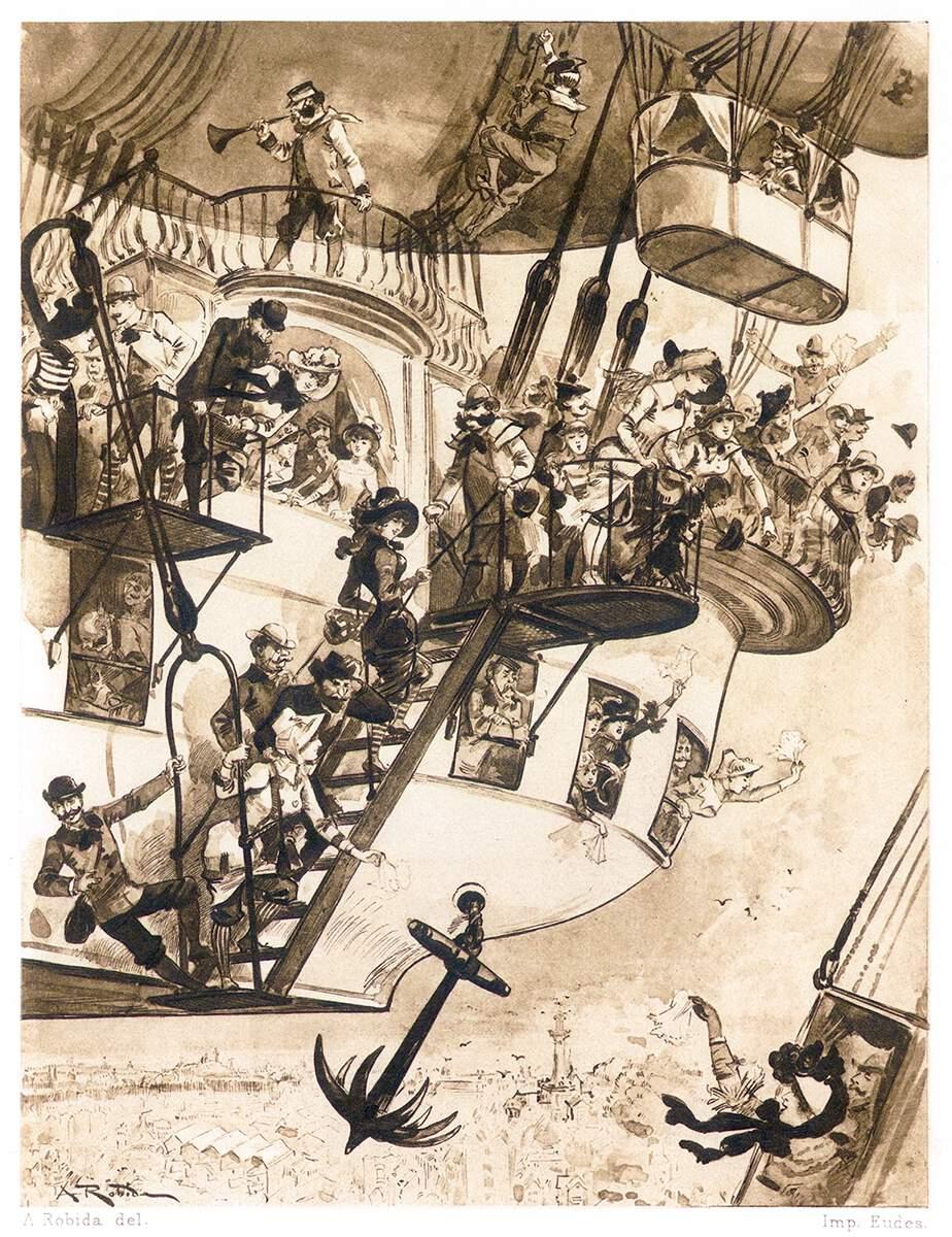 From "Le vingtième siècle" written & illustrated by Albert Robida, Paris: 1883 #illustration #art oldbookillustrations.com/illus…