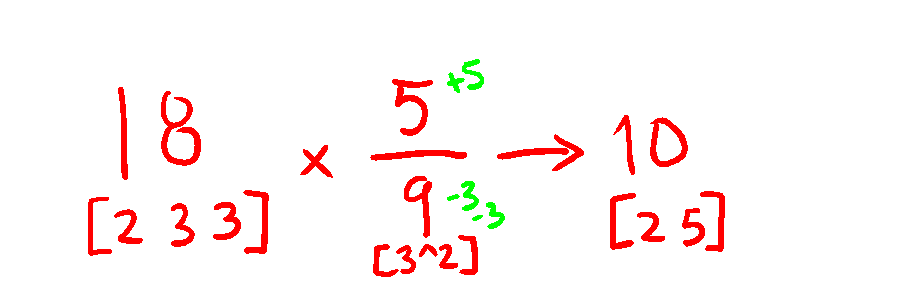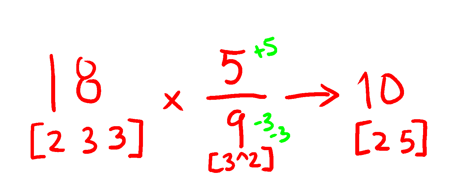 If I say.. the multiplication of a number by a fraction is like adding the prime factor in the numerator and subtracting the prime factor in the denumerator, does it helps understanding the idea better?