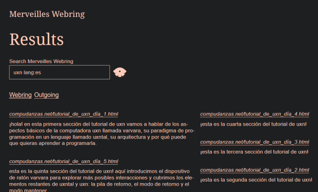 Here's a query searching for uxn matching articles written in spanish lieu.cblgh.org/?q=uxn+lang%3Ae…