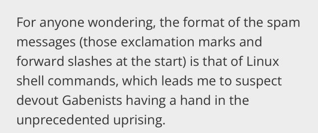 According to PCGamer they were Linux commands ๐Ÿคฆโ€โ™‚๏ธ the title even said โ€œspamming Linux commandsโ€œ, their writer has apparently never watched Twitch or played an MMO.