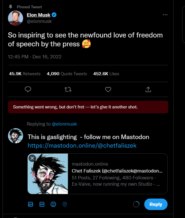 What Elon Musk is doing with Twitter and journalism is a dominance ritual much like the ones the 45th POTUS was pulling. The best response is to leave Twitter and ignore the Mediocre Bond Villain #MBV.