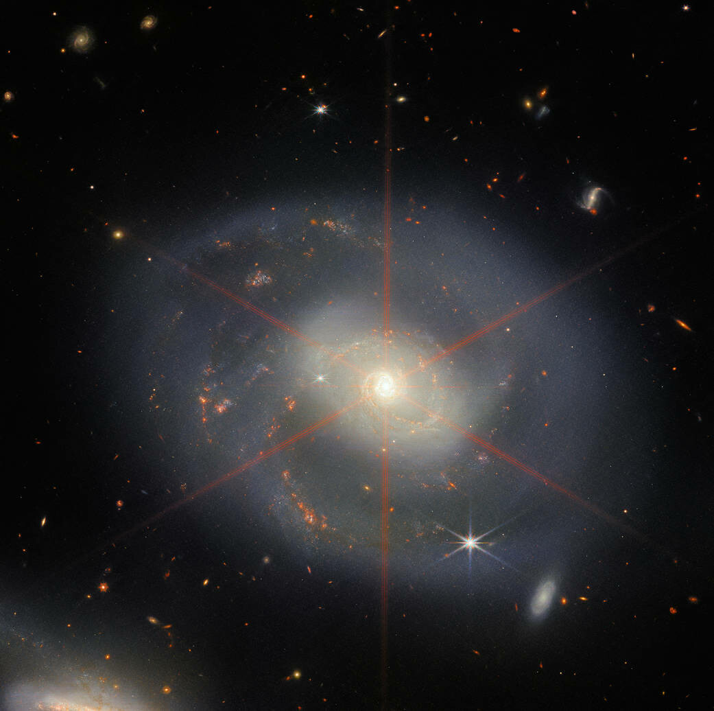 @NASAWebb reveals bright starbirth around the center of a spiral galaxy 220 light-years from Earth in the Pegasus constellation. The background is awash with other galaxies and stars. Imagine the worlds within! go.nasa.gov/3ClDV8a