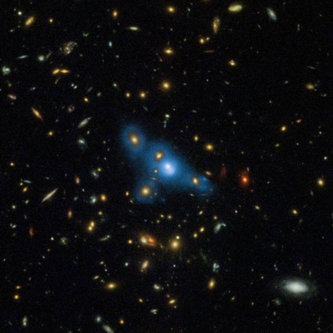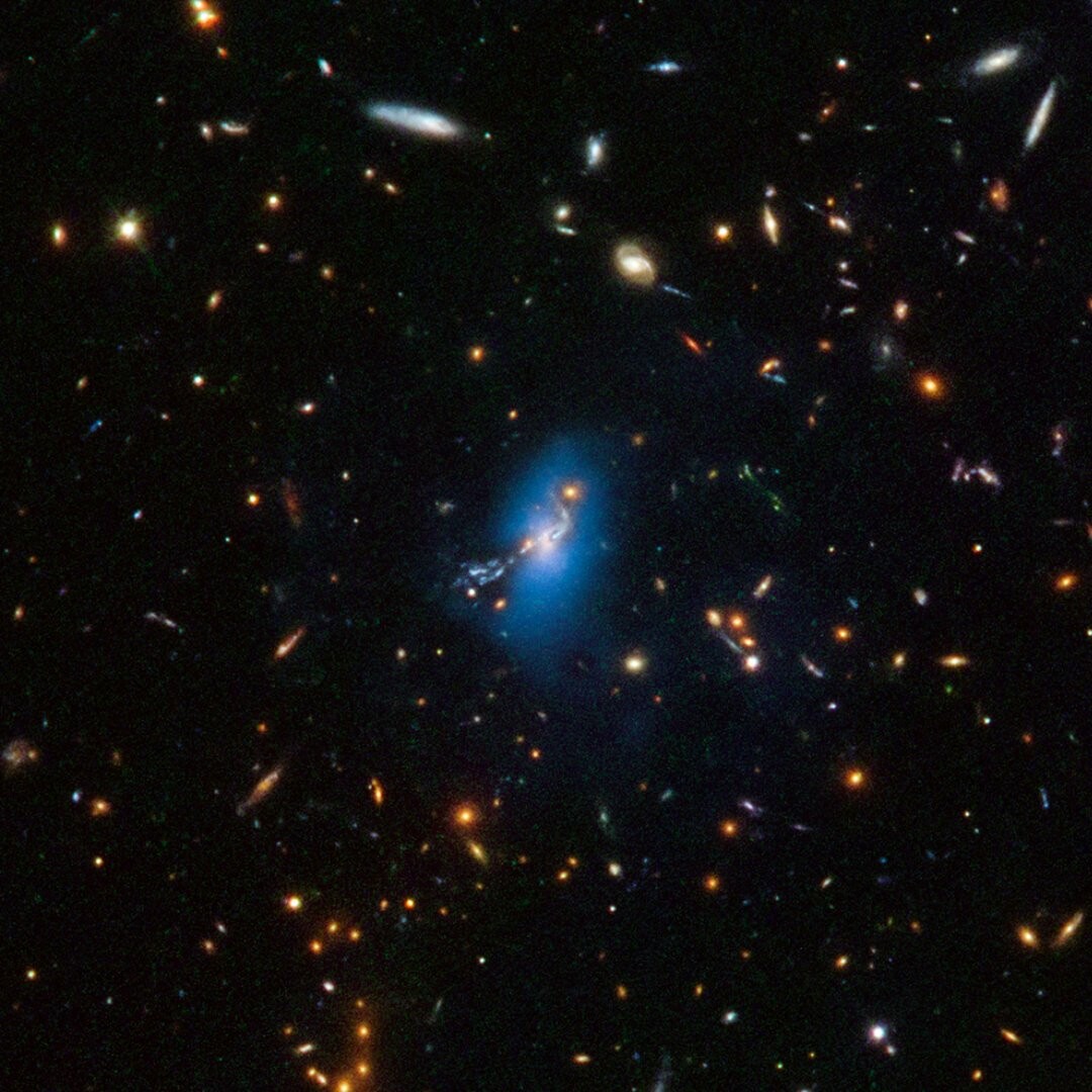 In giant clusters of hundreds or thousands of galaxies, innumerable stars wander among the galaxies like lost souls, emitting a ghostly haze of light.Andrea Gianopoulos (NASA)