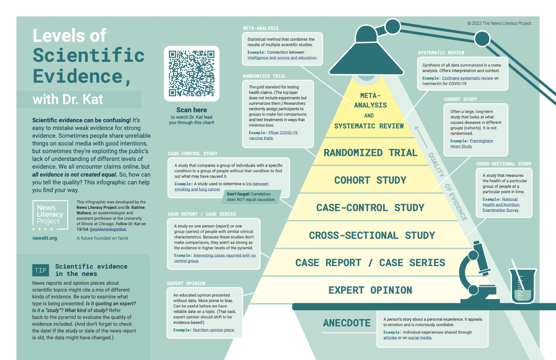 We worked with Dr. Katrine Wallace — an epidemiologist, educator and science literacy influencer — to produce a trio of resources focused on differentiating between different levels of scientific evidence.News Literacy Project