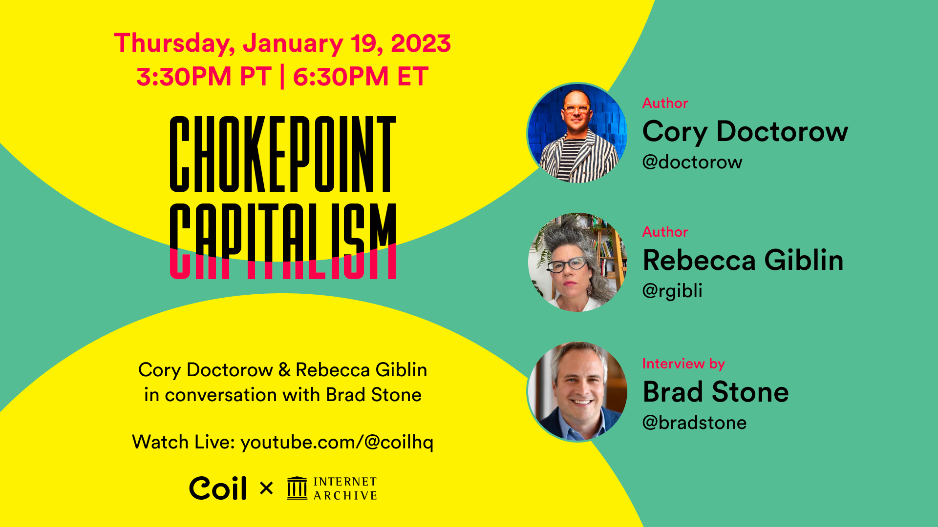 Join Coil, in partnership with Internet Archive, on YouTube Live for an interview with Chokepoint Capitalism authors’ Cory Doctorow and Rebecca Giblin as the...YouTube