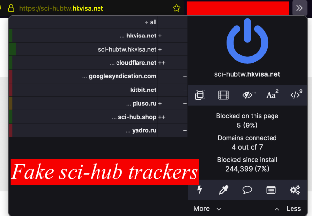 Attached: 3 images @BuluBane@mastodon.social These are fake - the ones that don't just redirect to sci-hub.se embed google ads in addition to other javascript trackers, and give the old bitcoin wallet address.social.coop