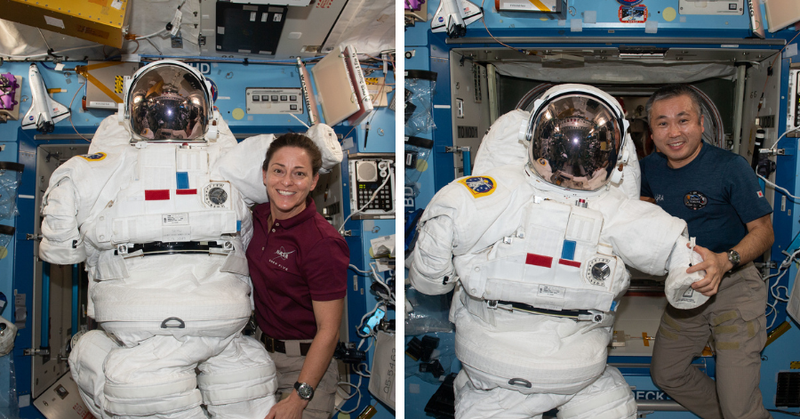 Today’s spacewalk officially began at 8:14am ET. Mann and Wakata will spend about six-and-a-half hours installing modification kits for future solar array installation. Read more.. go.nasa.gov/3XrVADJ