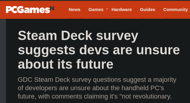 Oh jeez. This is the problem when one gaming site references another, without fact checking. Game Rant ran a story based on a PCGamesN removed article, where they accidentally used year-old data about the Steam Deck ๐คฆ