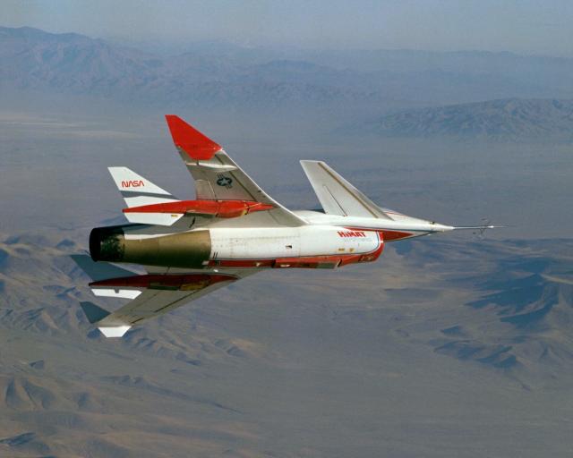 Two remotely piloted, experimental Highly Maneuverable Aircraft Technology (HiMAT) vehicles were used at the NASA Dryden Flight Research Center at Edwards, CA, to develop high-performance fighter technologies.NASA