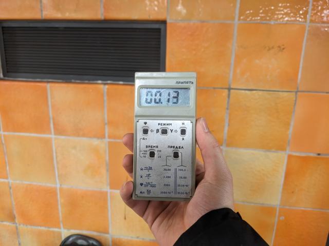 Standing next to the wall it's 0.1 to 0.15 uSv/h