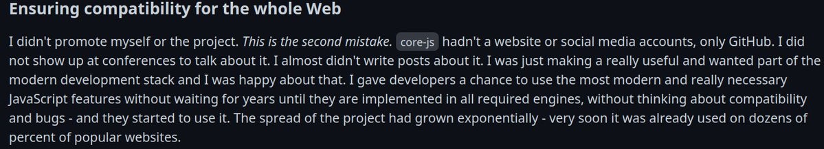 If you want to be depressed have a read of this blog post by the core-js dev, I'm currently in the process of making a video github.com/zloirock/core-js/bl…
