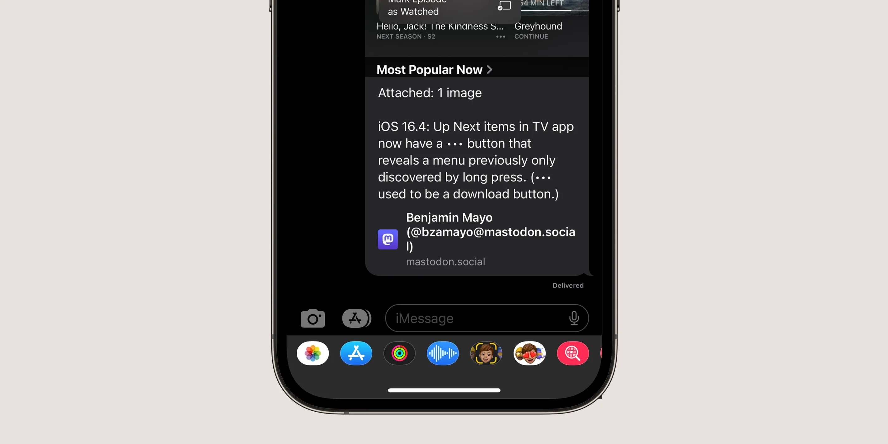 “The new integration means that when sharing a link to a Mastodon post, iMessage fetches details like the post text, author name, attachments and renders it inline in the conversation thread.”