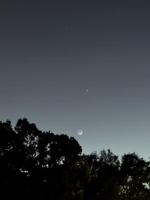 There’s a meetup happening in the western sky: the crescent Moon sits close to Jupiter, with Venus below them. Jupiter and Venus will continue to cozy up until March 1, when they’ll be at their closest.