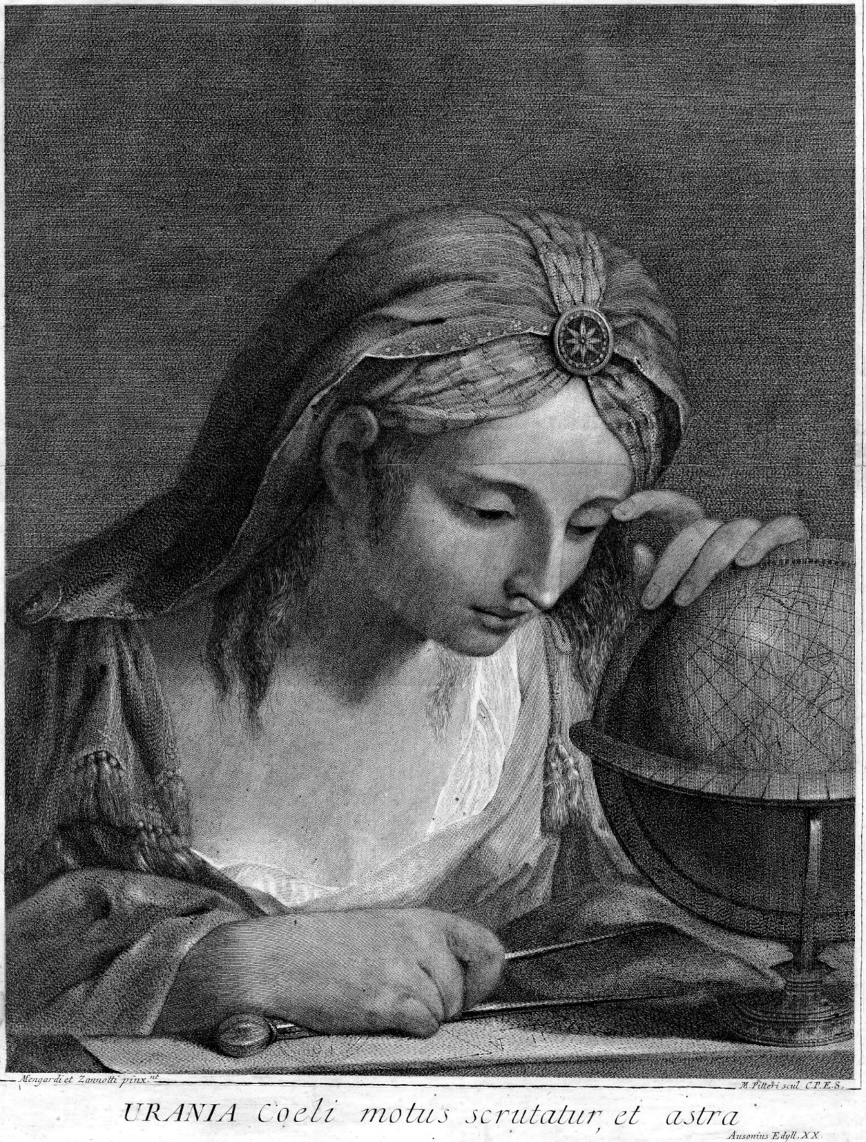 "Urania coeli motus scrutatur, et astra" (~1730-1786) by Marco Pitteri, after Mengardi and Zannotti.