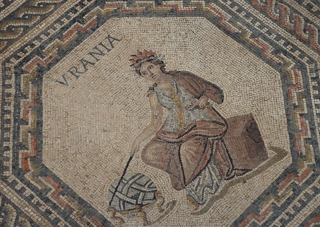Detail of the Vichten mosaic depicting the mythological and literary theme of the nine Muses, c. 240 AD, National Museum of History and Art, Luxembourg