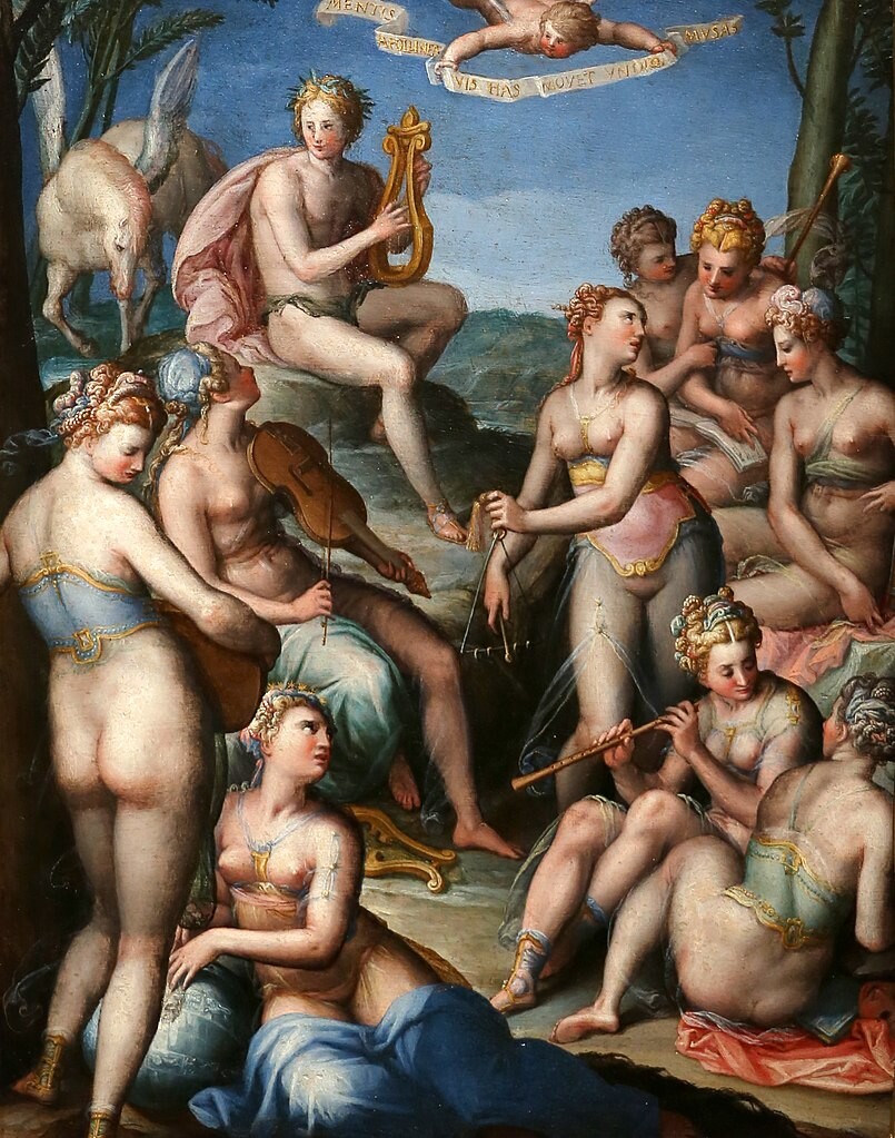 "Apollo and the Muses on Mount Parnassus" by Francesco Bartolozzi after Ludwig Guttenbrunn. (1800)