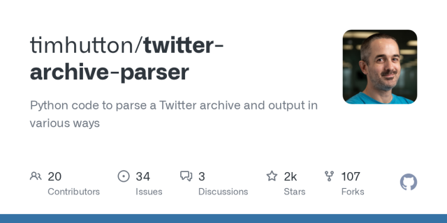 Python code to parse a Twitter archive and output in various ways - GitHub - timhutton/twitter-archive-parser: Python code to parse a Twitter archive and output in various waysGitHub