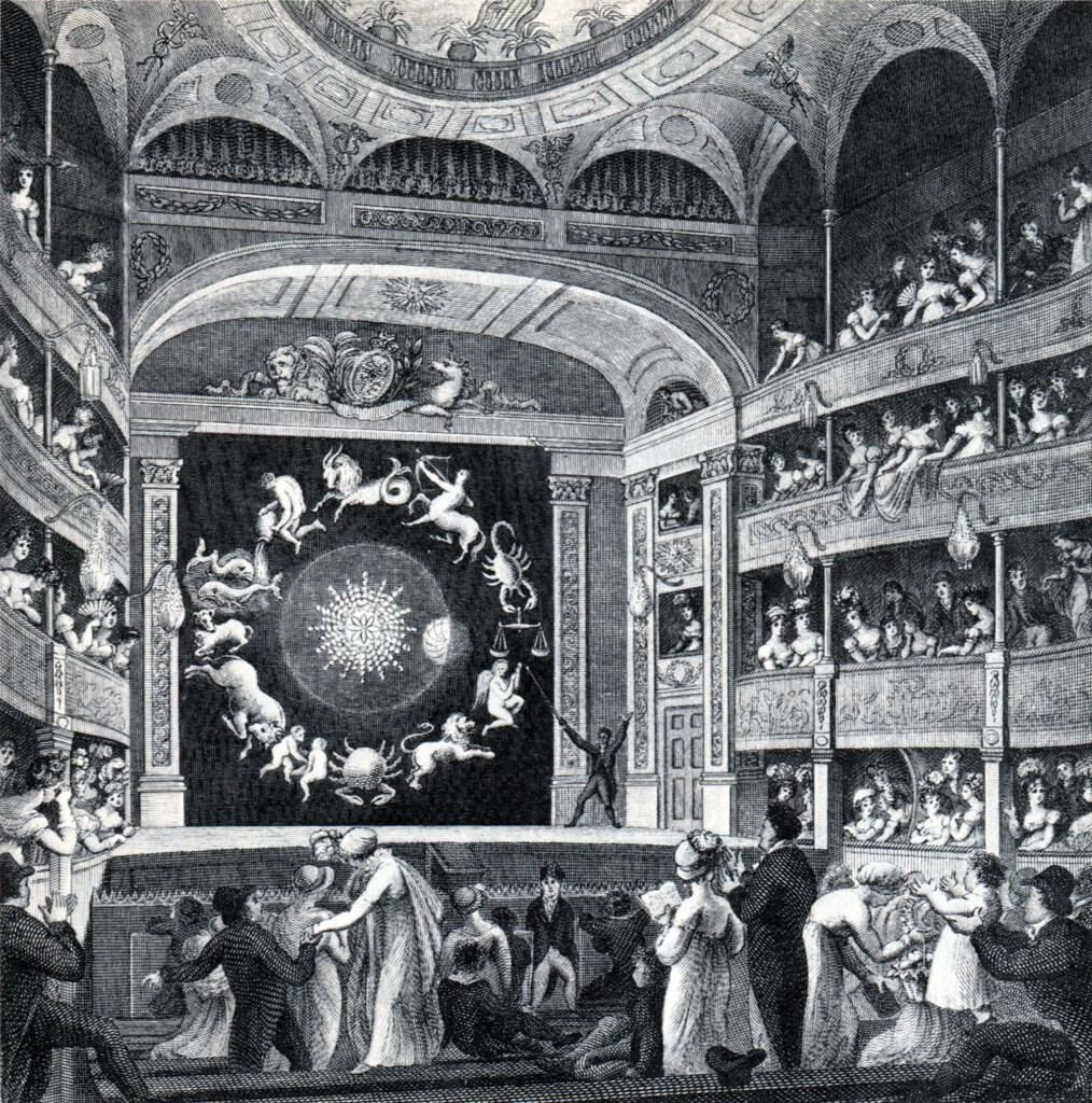 Fan with watercolor drawing: "Allegory of Science and Astronomy" by Unknown (~1780) from The Fan Museum.