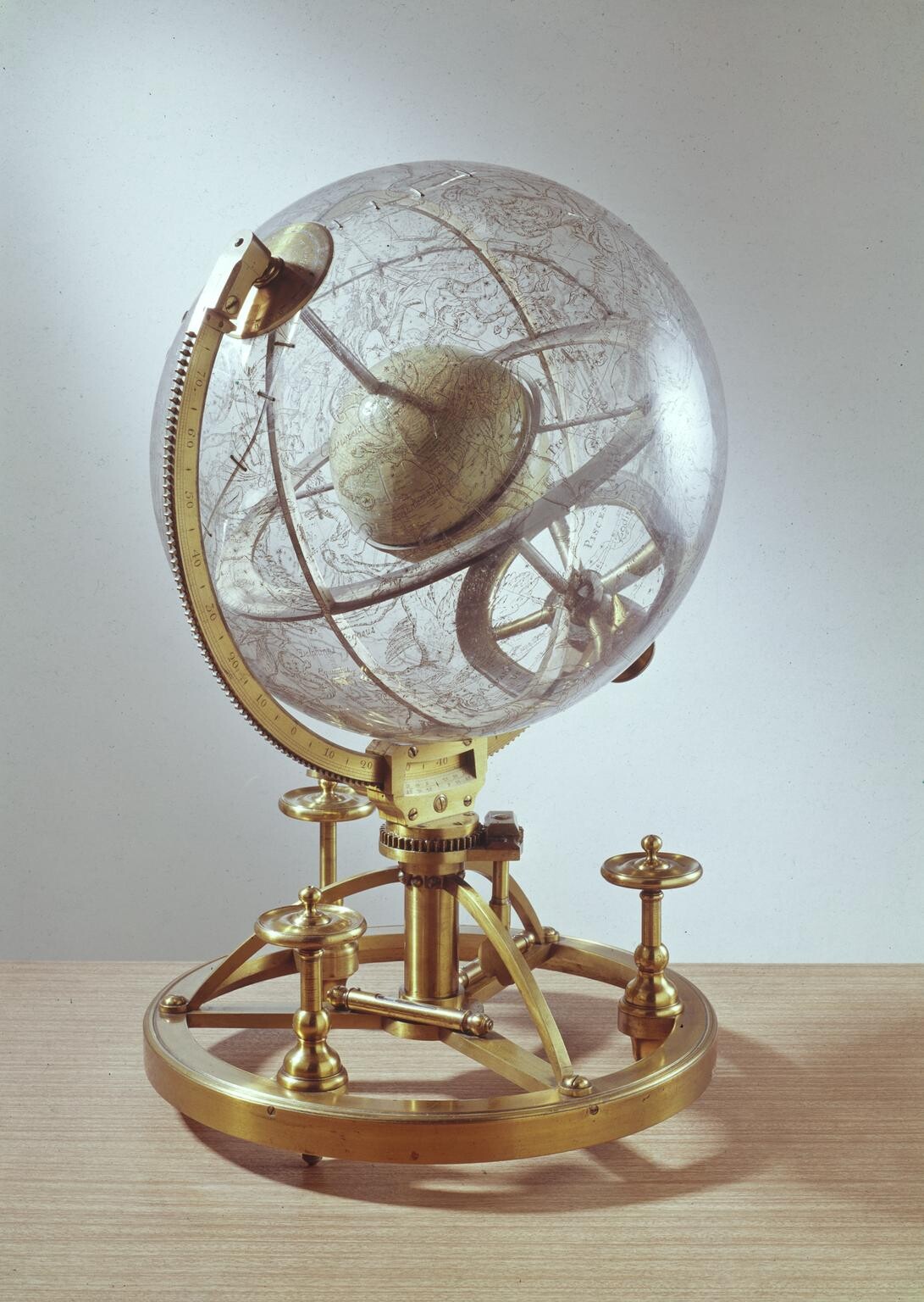 Glass celestial sphere (72269/57/1), engraved by John Cowley, 1739, with globe stand by Heath & Wing, London, in the second half of the 18th century.collection.sciencemuseumgroup.org.uk