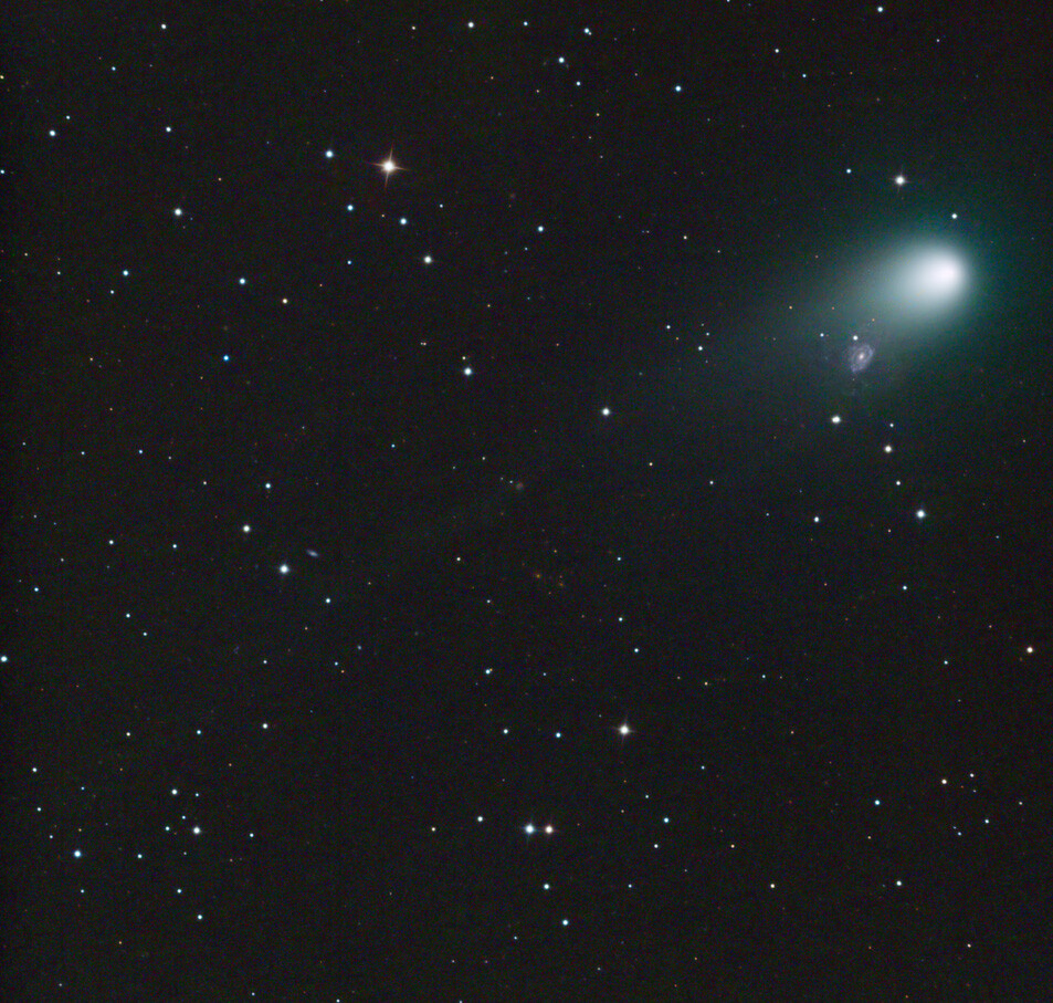 Robotic data from Grand Mesa Observatory Scope 4. 14 subexposures were blended as comet only and star only images then combined. The globular clusters are Messier 53 and NGC 5053. Processed only in PixInsight.Flickr
