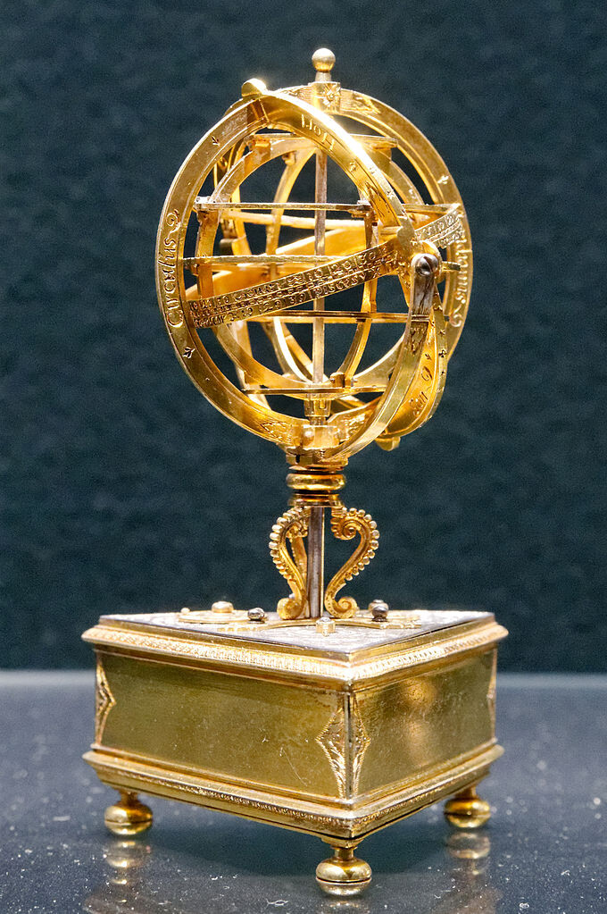 Triangular Table Clock with an Armillary Sphere by Pierre Noytolon (~1600-1615).