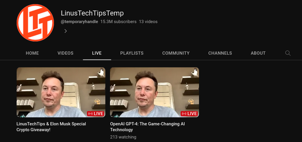 oh it's the exact same thing that happened to Corridor and is not only the main LTT also tech linked has the crypto scam live