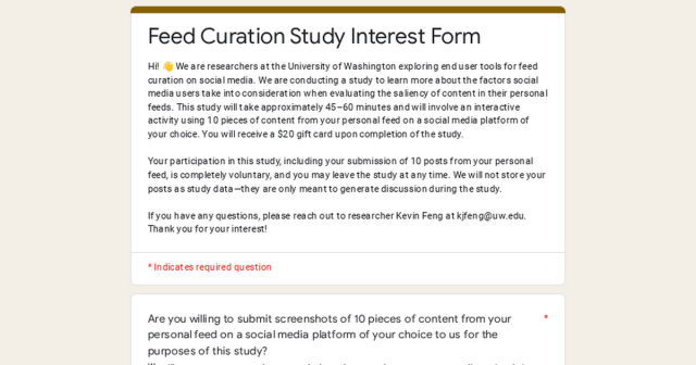 Hi! 👋 We are researchers at the University of Washington exploring end user tools for feed curation on social media.Google Docs