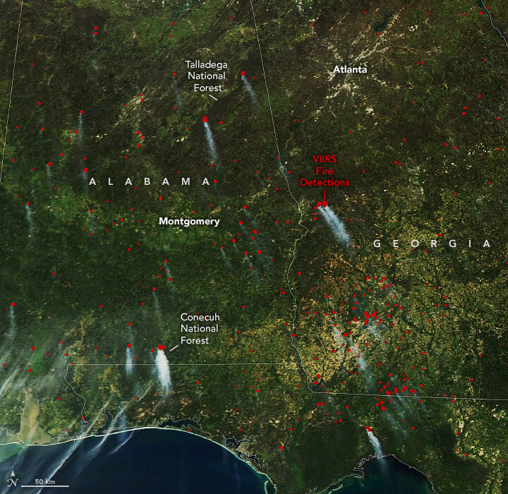 Frequent fires in the pine forests in the southeastern United States enable trees and other wildlife to flourish.go.nasa.gov