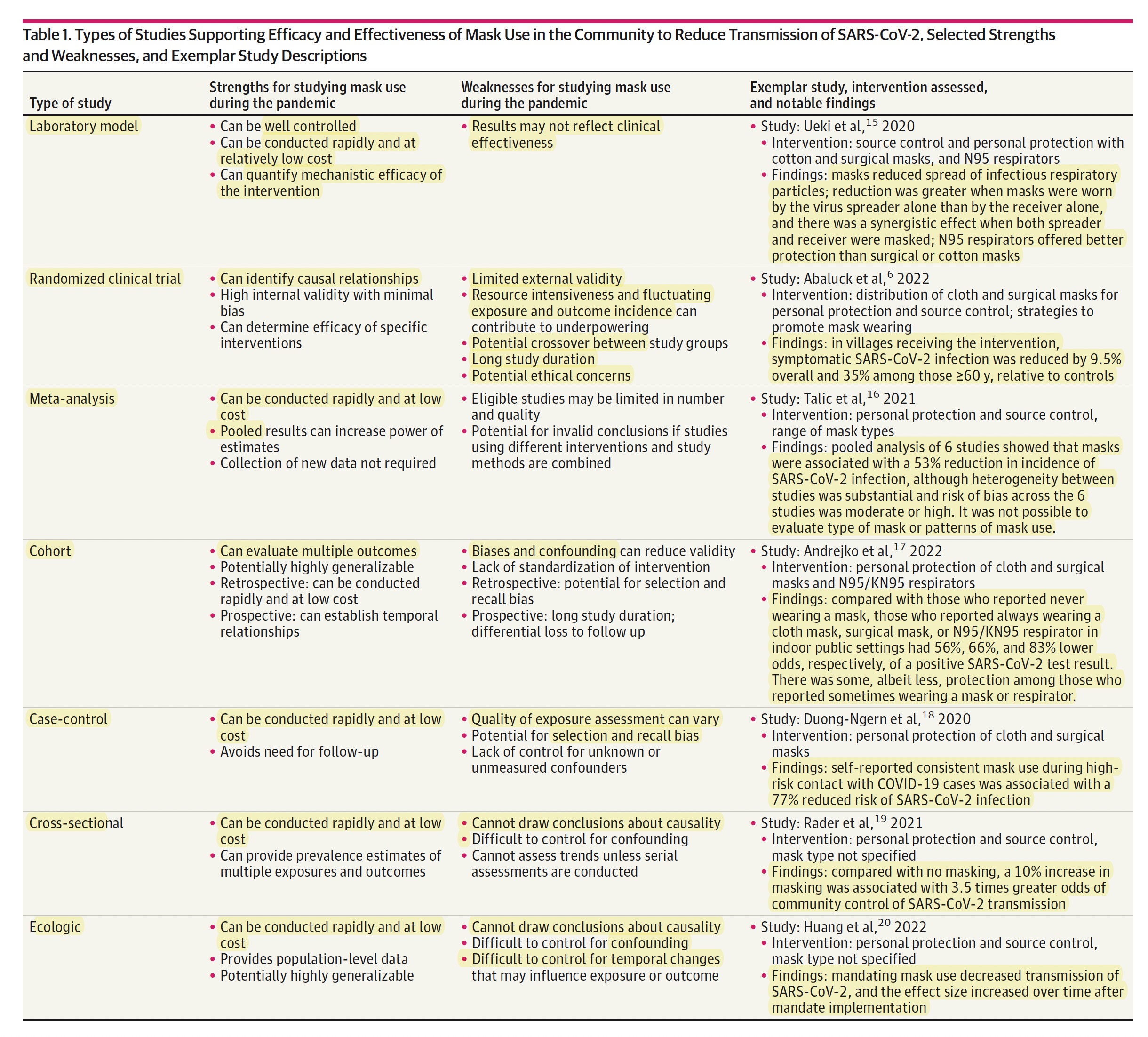 The totality of all data available strongly supports masks to reduce SARS-CoV-2 spread, especially those of high quality.