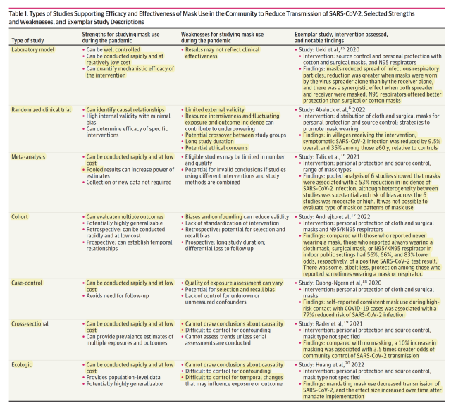 This special communication evaluates the evidence on the association of face mask use with the spread of SARS-CoV-2.Shama Cash-Goldwasser, MD, MPH (JAMA Network)