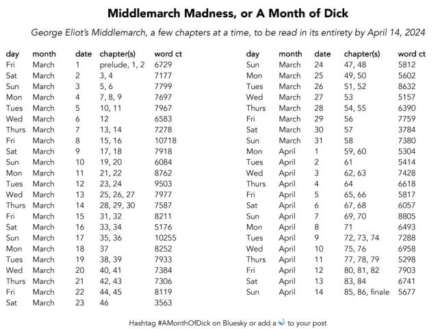 Just a reminder for those who want to play along that Middlemarch Madness, aka A Month of Dick, starts in under a week! 🐋Bluesky Social