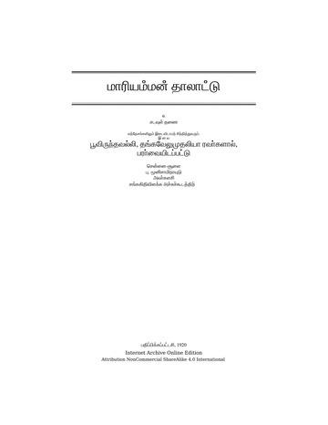 மாரியமஂமனஂ தாலாடஂடு : தங்கவேலுமுதலியா ரவா்களால் : Free Download, Borrow, and Streaming : Internet Archive