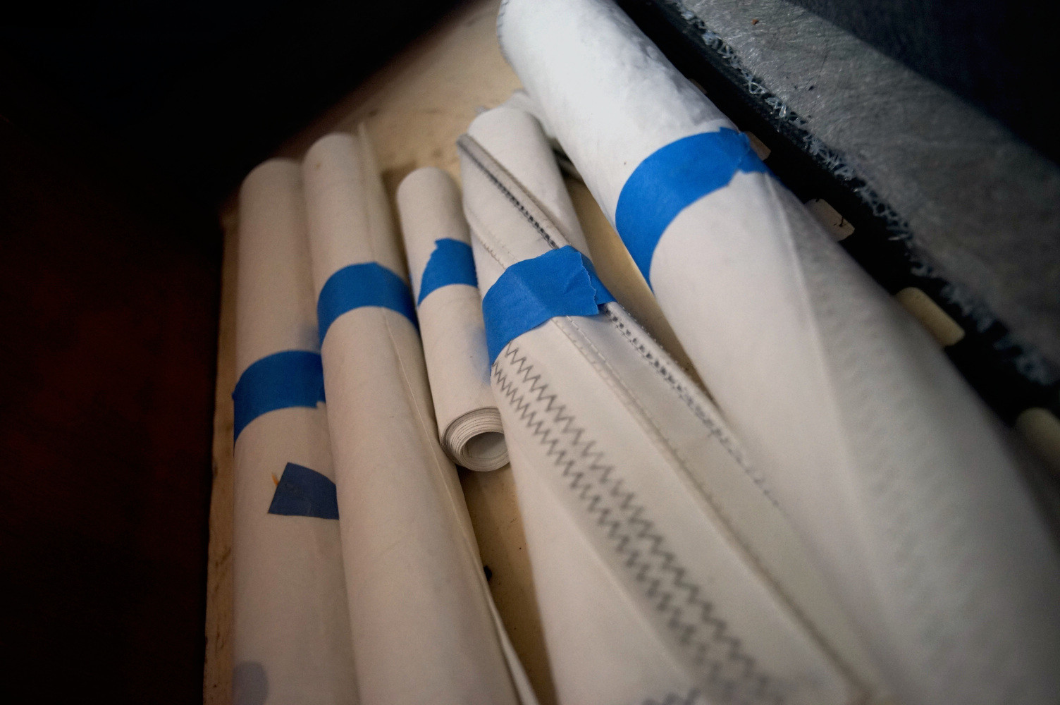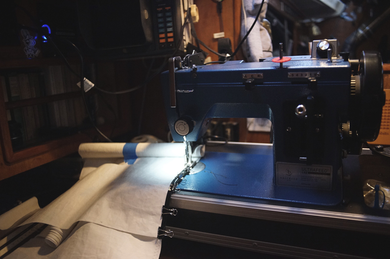 We had a new sail made and cut the old one into panels, a few were bad, some were good, we gave some away to friends on other boats, and we'll reuse some for various projects.