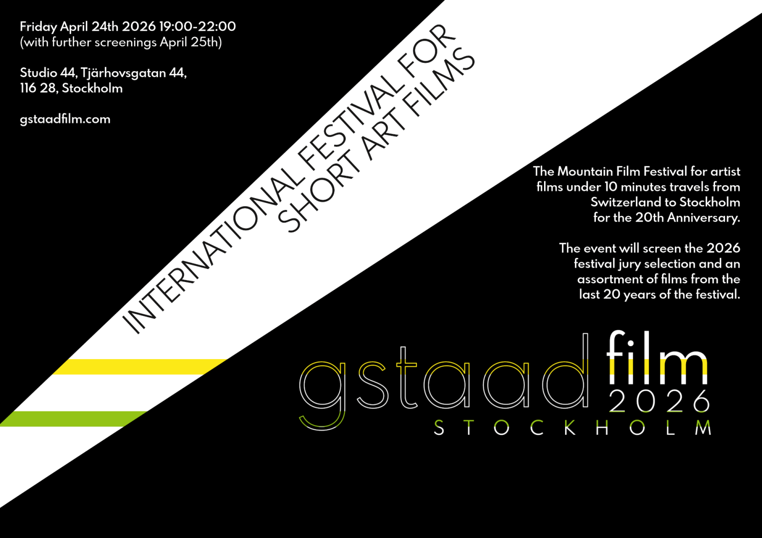 Gstaadfilm 2026! At last, our most recent edition was delayed for a few reasons but we're finally touring the mountain film festival, this time going to Stockholm for the 24th of April 2026 at Studio 44.