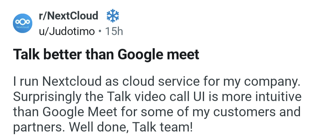#NextcloudTalk offers private communication without #vendorlockin, including threads, live translations, federated calls, and more!