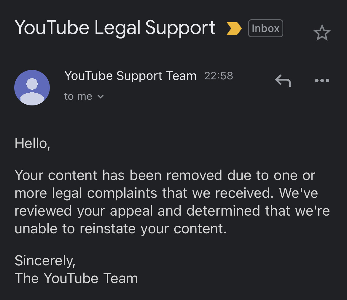 in reply to Liam @ GamingOnLinux ๐ง๐ฎ • • •"We've reviewed your appeal"