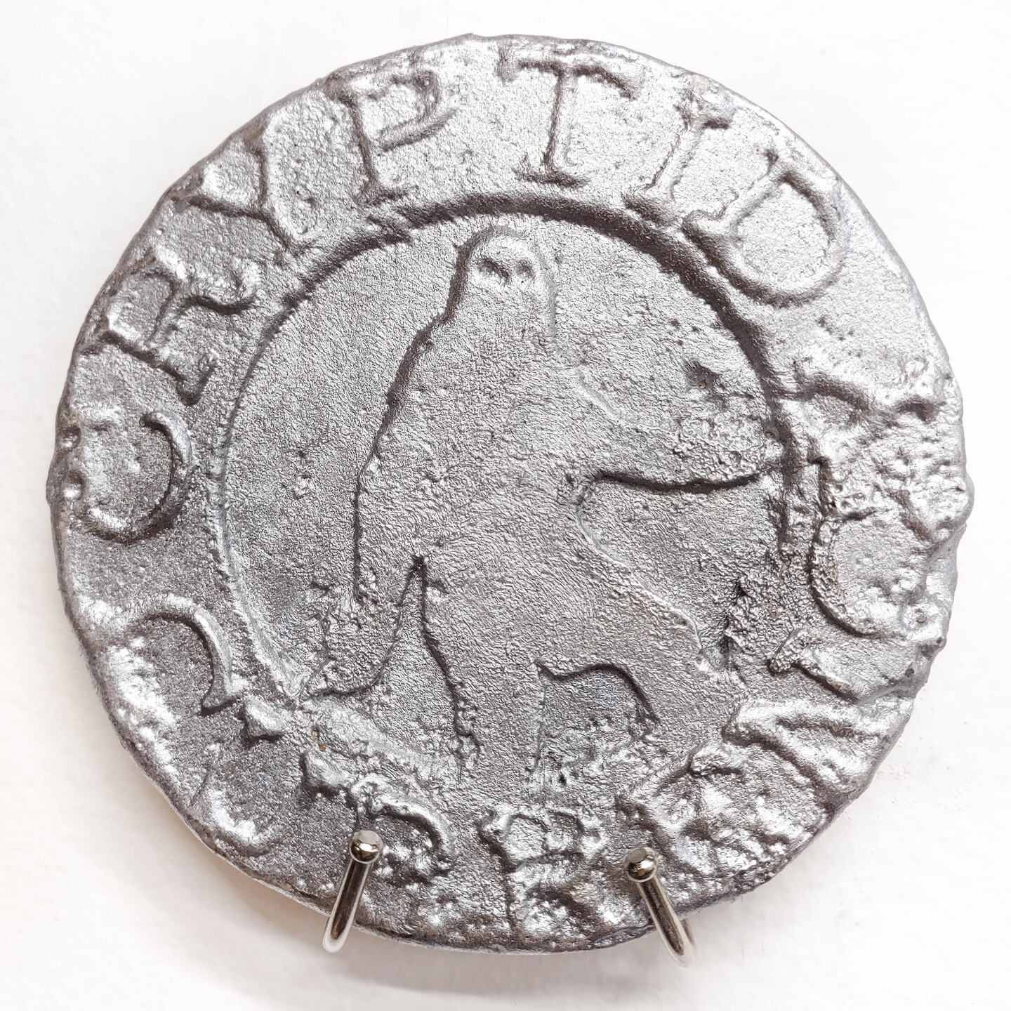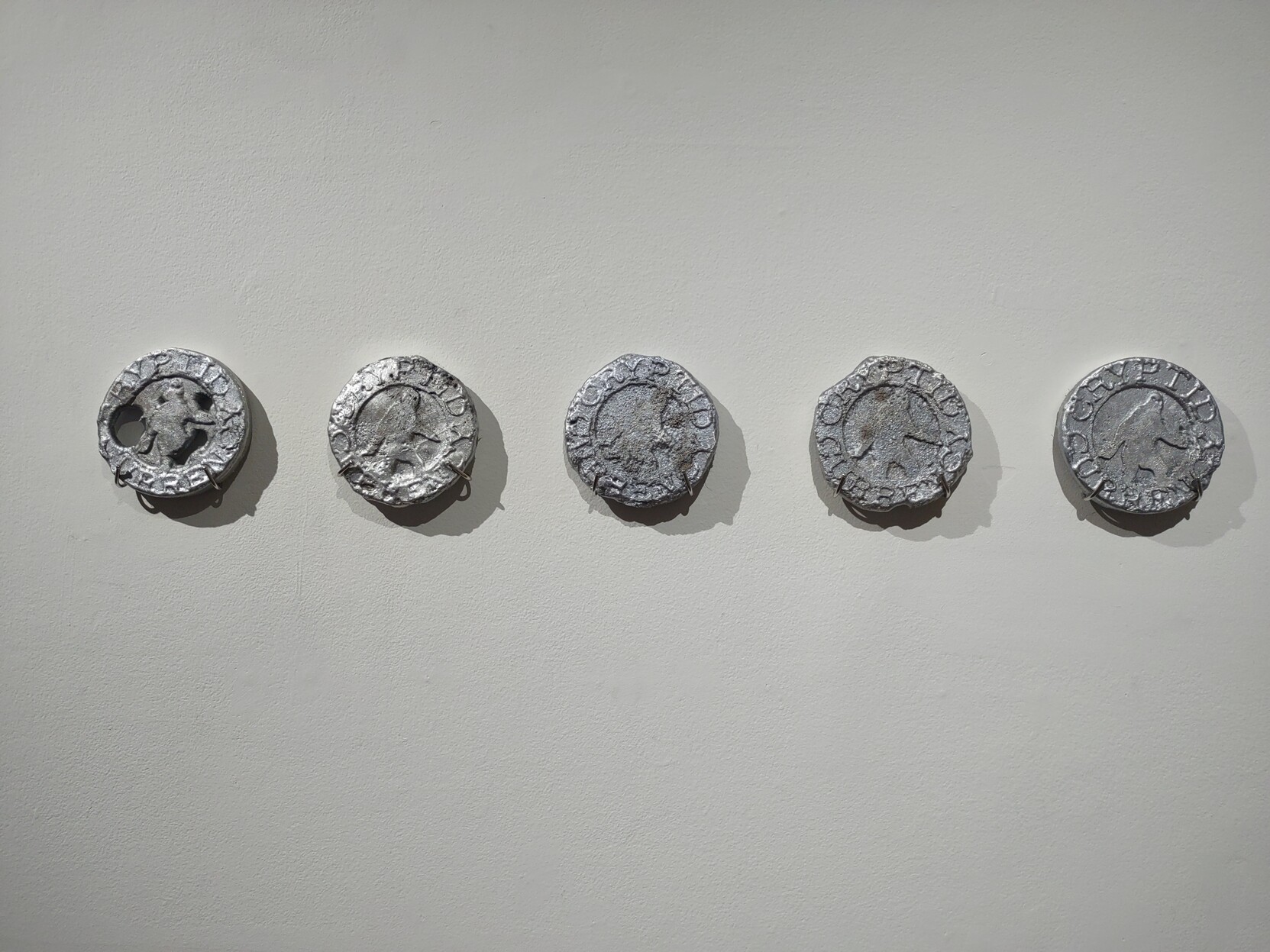 these are my "Cryptid Currencies," freshly minted cast aluminum tokens depicting Bigfoot in various stages of decrepitude. Eminently fungible.