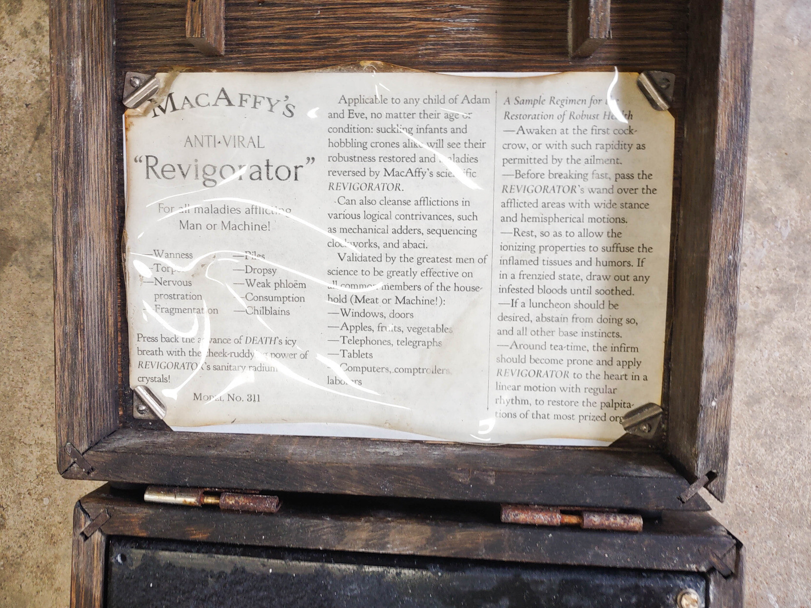 This is "MacAffy's Anti-Viral 'Revigorator,'"' which purports to cure "all maladies afflicting Man or Machine!"