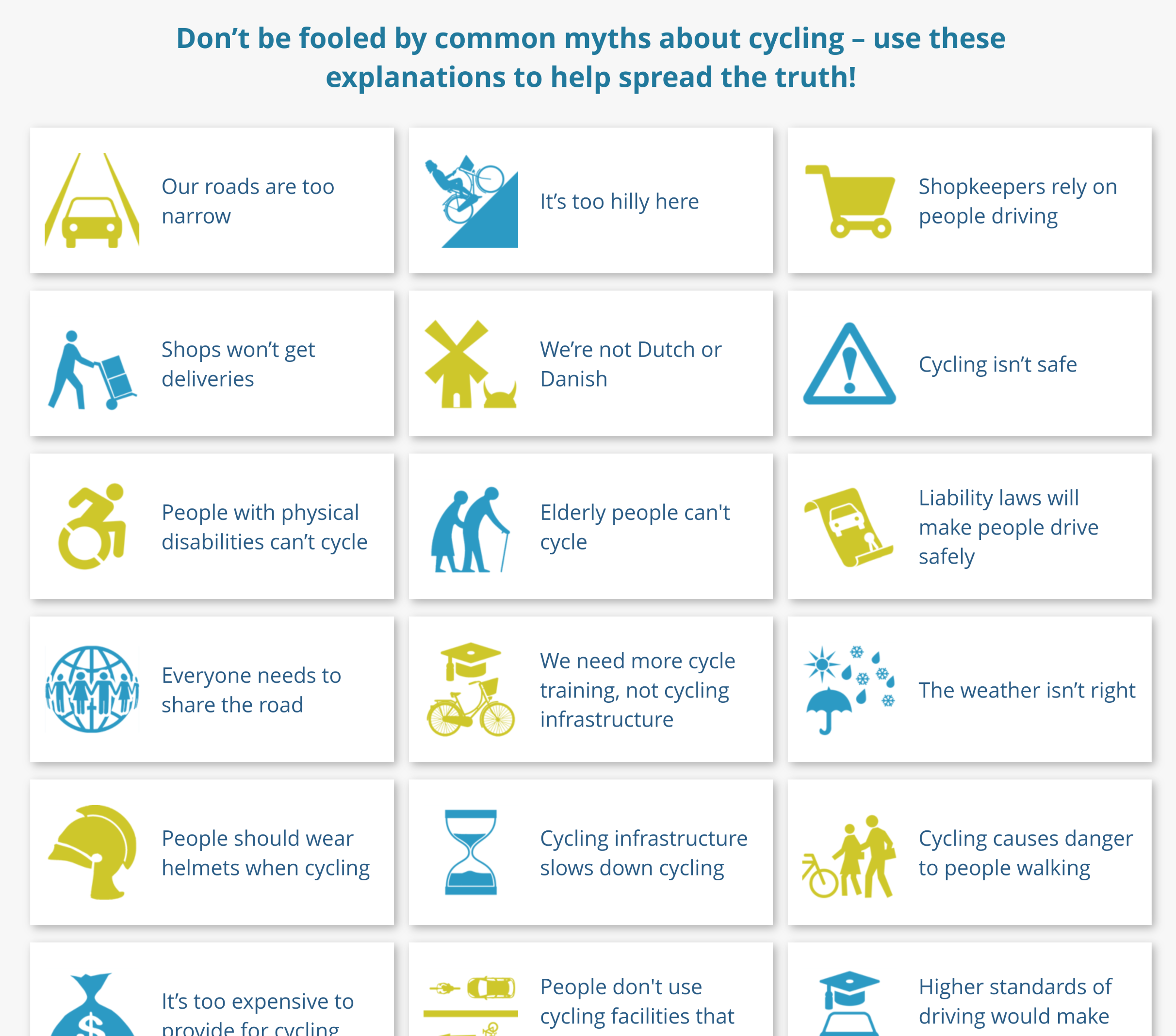A list of all kinds of uninformed reasons people give for not making it safer and easier to bike, with rebuttals. This is exactly the kind of thing the internet is useful for!