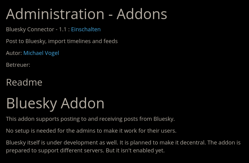 Ich lasse seit kurzen eine Friendica Installation unter fedinaut.de hosten und bin gerade dabei mich in die Administration hinein zu arbeiten. Was z. B. ziemlich nervt sind die regelmäßigen Beiträge von Bluesky die ich an sich gar nicht will. Zumal ich mir erst einen Bluesky Account zulegen müsste um auch so das es nach Bluesky zurückläuft antworten zu können.