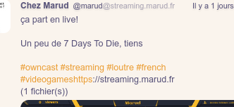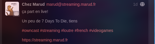 in reply to Chez Marud • • •Hey @gabek@social.gabekangas.com (sorry to bother you here), did I set something wrong ? There is no space between the hashtags and the link for the stream, so the link is not usable.