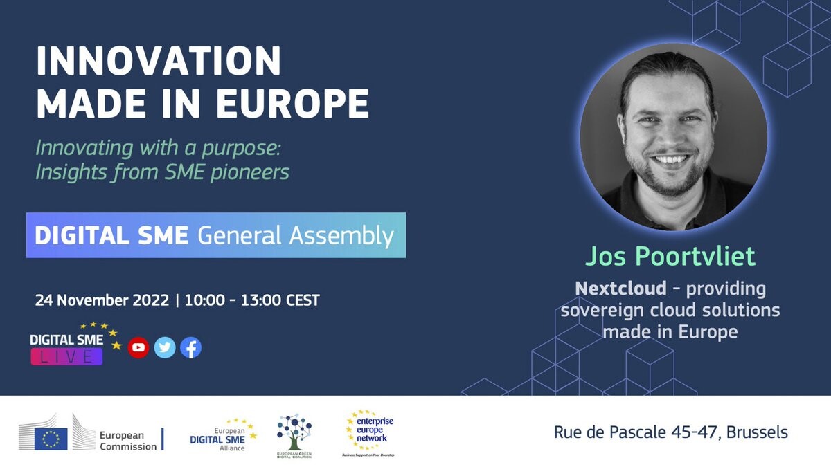 Join the @EUdigitalsme General Assembly 2022 and listen to the talk where @jospoortvliet will share the "innovating with a purpose" story from Nextcloud!